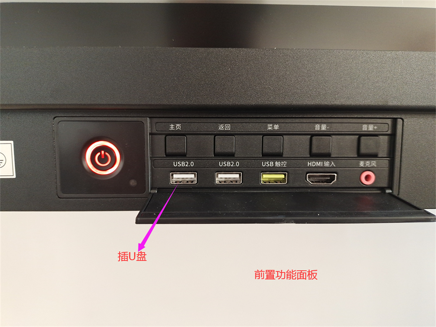 插入U盘(存放播放PPT文档)