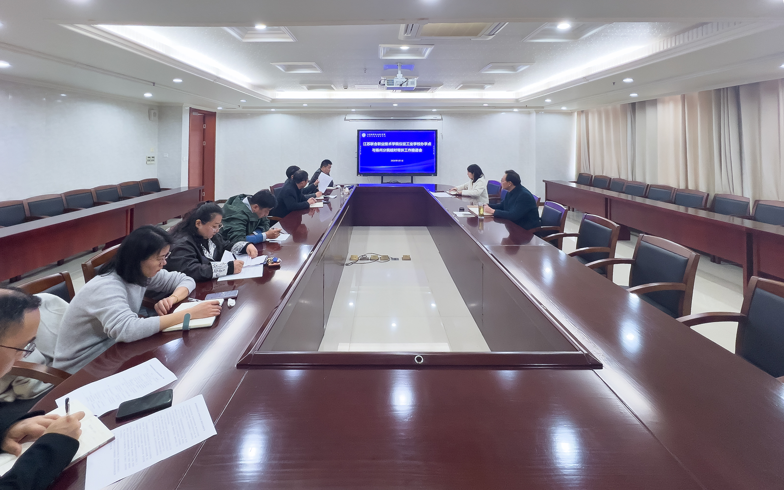 为压紧压实结对帮扶工作责任,细化落实帮扶协议各项任务,推动校际结对帮扶工作提质增效,4月1日下午,江苏联合职业技术学院仪征工业学校办学点与扬州分院结对帮扶工作推进会在学校图文信息楼901会议室召开。张瑞祥副院长出席本次会议,会议由教务处处长葛振娣主持,各结对帮扶处室、系部负责人参加会议。