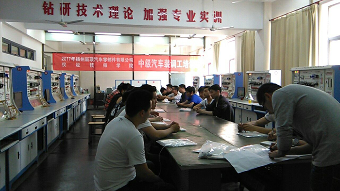 为了提高公司员工队伍的素质及专业技能,增加企业在市场中的竞争能力,扬州新联汽车零部件有限公司决定委托我院对87名员工进行汽车装调工初中级两个班的培训。培训从5月23日至5月26日共计历时4天,初、中级两个班同时开设,其中初级工培训3天,中级工培训4天。培训的理论授课地点在我院C107和D108报告厅进行,实际操作培训在扬州新联汽车零部件有限公司车间进行,基础理论知识包括机械试图、电工常识等专业课程。培训结束后,由我院白沙职业技能鉴定所组织鉴定考核,对考核合格者发初、中级汽车装调工调整工技能等级证书。