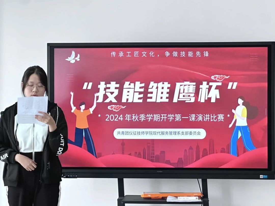 为深入挖掘中华优秀工匠文化精华,引导学生树立技能成才、技能报国理想信念,落实人力资源社会保障部职业能力建设司《关于在技工院校开展2024年秋季学期开学第一课活动的通知》文件精神,10月10日下午,仪征技师学院现代服务管理系团总支在行政楼509党建园地组织开展“技能雏鹰杯”2024年秋季学期开学第一课主题演讲比赛。