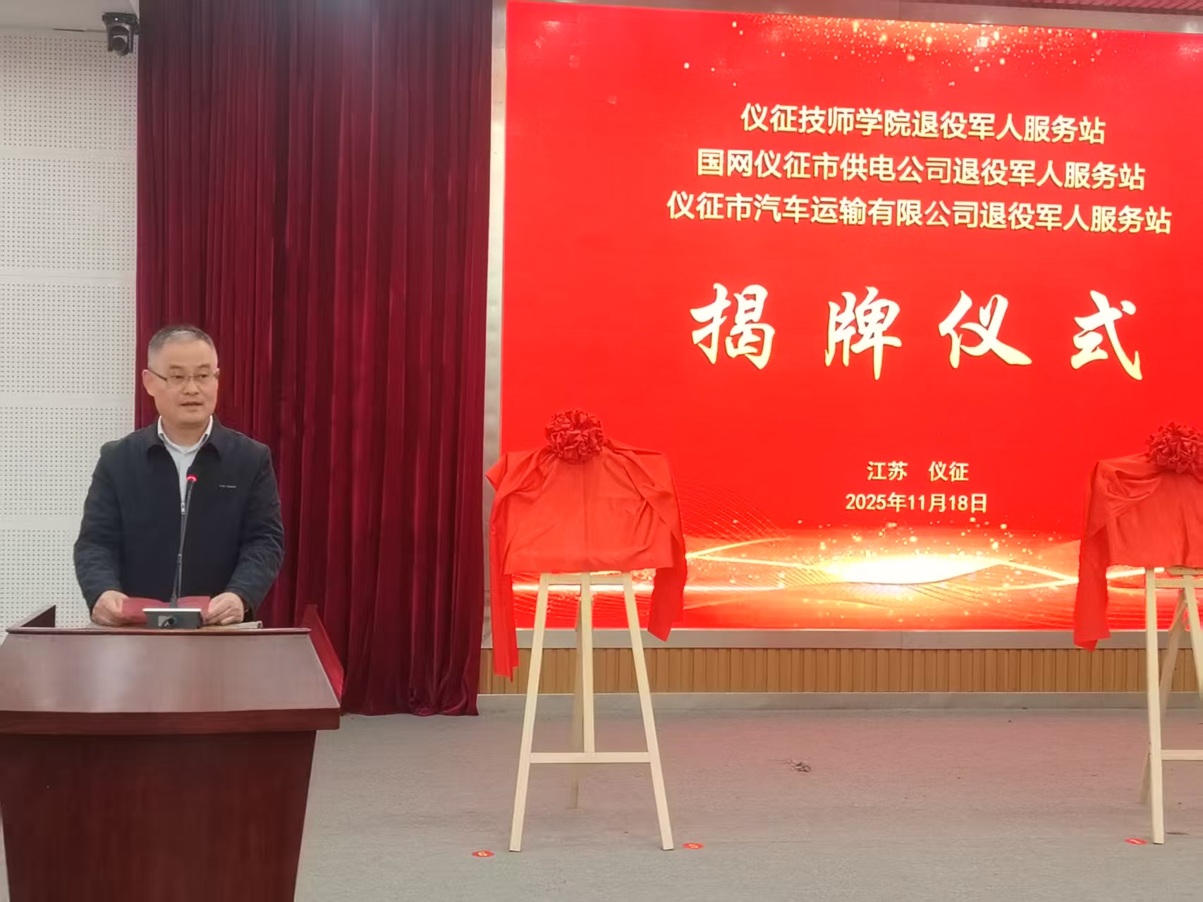 随后,潘天宏局长介绍了校、企退役军人服务站的建设背景、功能定位和服务内容。他指出,此次揭牌的三个服务站分别设立在技师学院、汽车运输有限公司和供电公司,是仪征市推动退役军人服务保障向基层延伸、向行业拓展的重要举措,将为退役军人提供更加精准、高效、便捷的服务,切实增强退役军人的获得感、荣誉感和归属感。