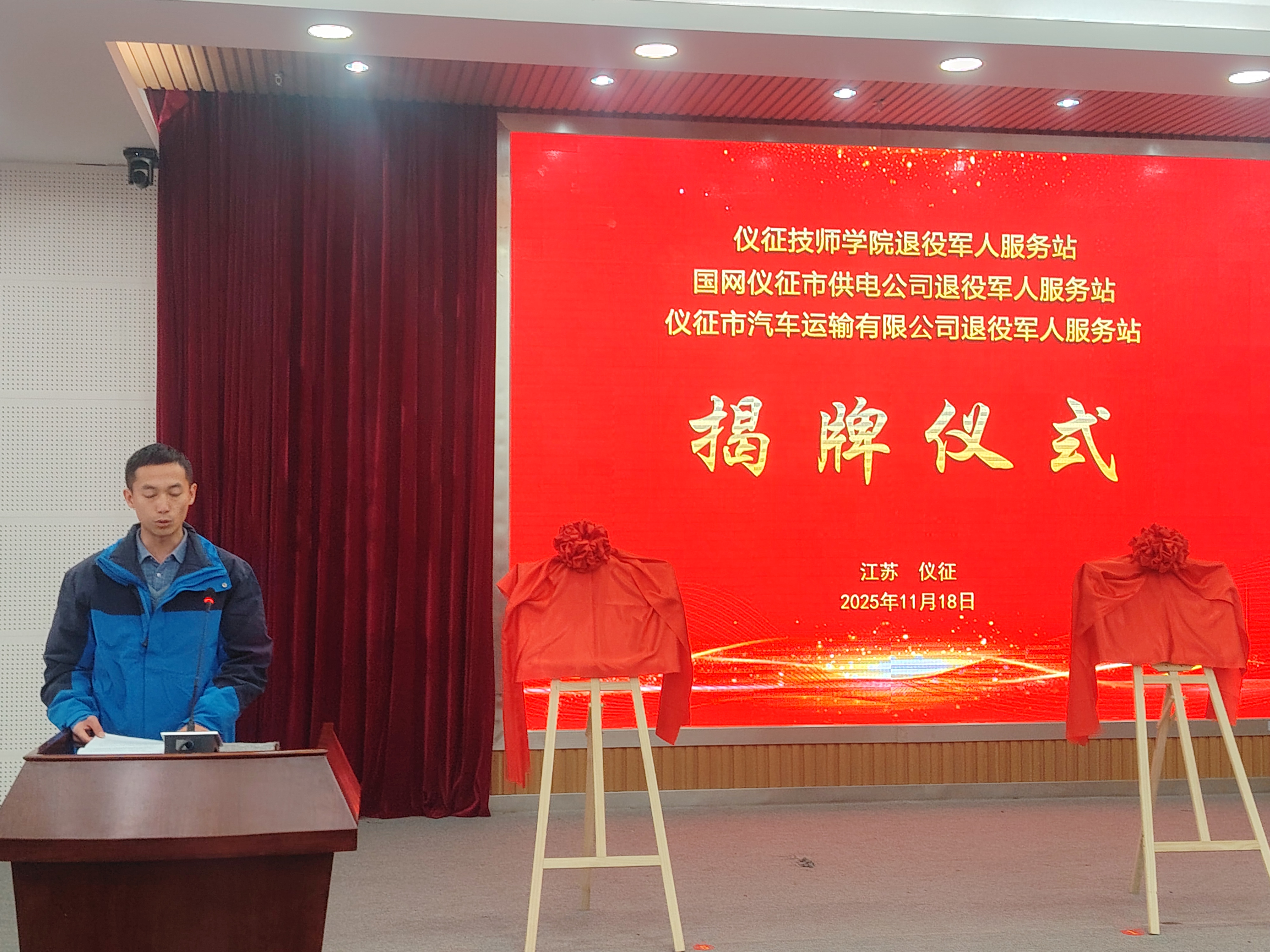 仪式伊始,仪征技师学院院长周万春致欢迎辞,对各级领导和嘉宾的到来表示热烈欢迎,并表示学院将充分发挥教育资源优势,积极打造退役军人技能培训、学历提升和就业服务的重要平台,助力退役军人实现高质量就业创业。