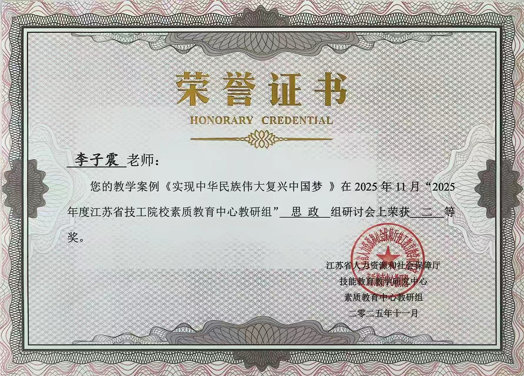 近日,江苏省技工院校素质教育中心教研组2025年度教科研成果评比结果揭晓,学院共获得一等奖1项,二等奖6项,三等奖5项。 本次教研活动旨在加强全省技工院校素质教育工作经验交流,促进技工院校教师职业能力提升,深化文化基础课教学改革。同时,活动组织开展了思政、语文、数学、英语、体育、历史等学科的教学成果评比。 一等奖 二等奖 今后,教研室将积极发挥优秀教学成果的示范引领作用,持续加强课程建设,继续深化教育教学改革,不断提升教科研质量水平。 审核:陈煜 通讯员:曹德臣