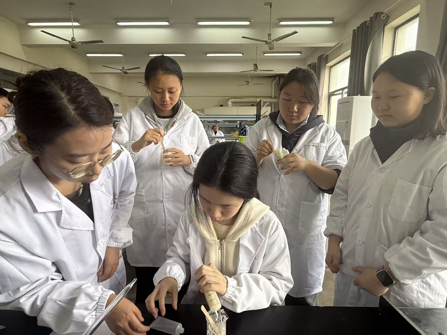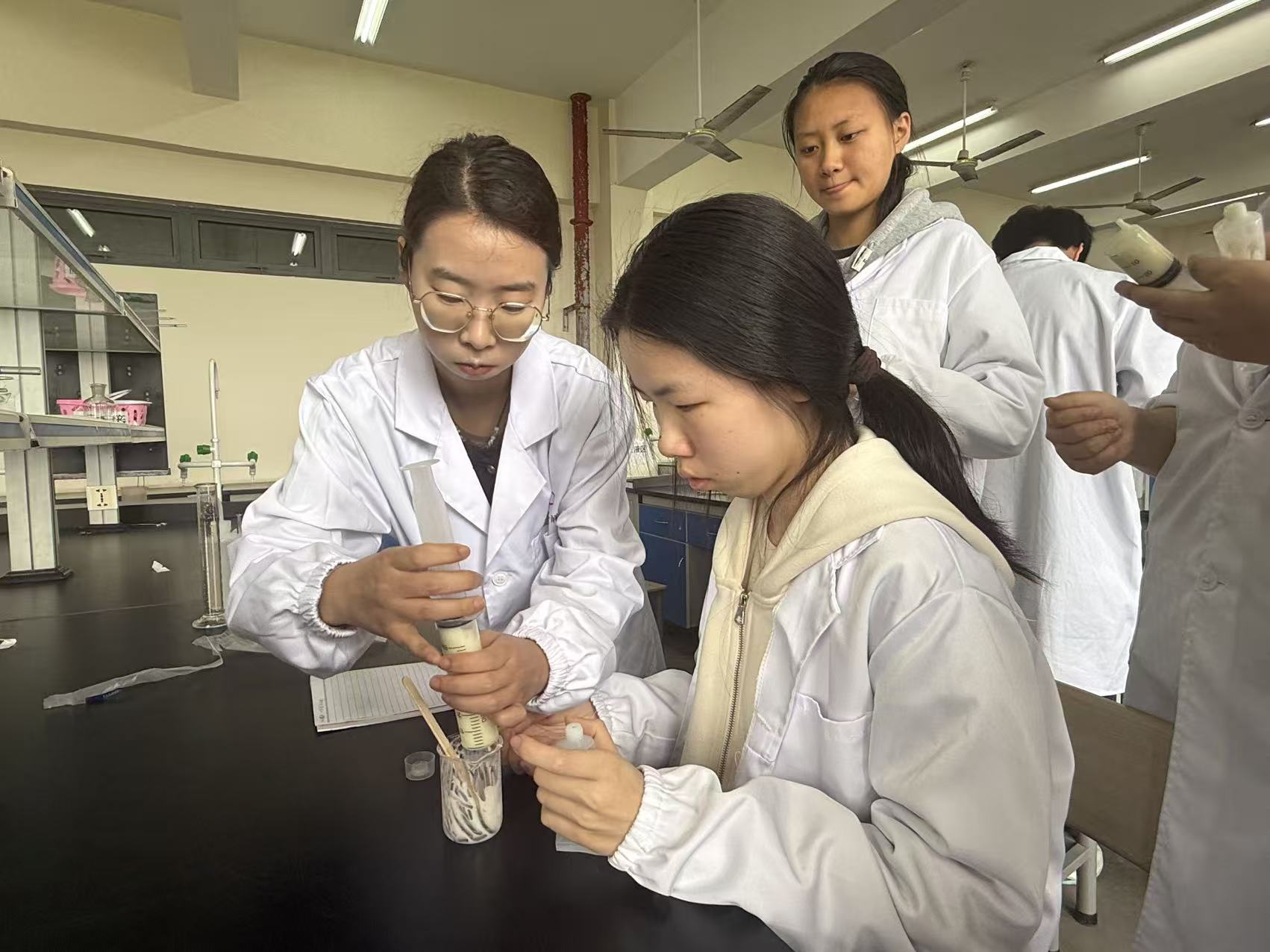 4月15日下午,仪征技师学院化妆品制作社团人气高涨,课堂氛围热烈。本次社团活动以DIY护手霜为主题,由现代服务管理系化工专业周莹老师授课,带领同学们在动手实践中感受化学之美。