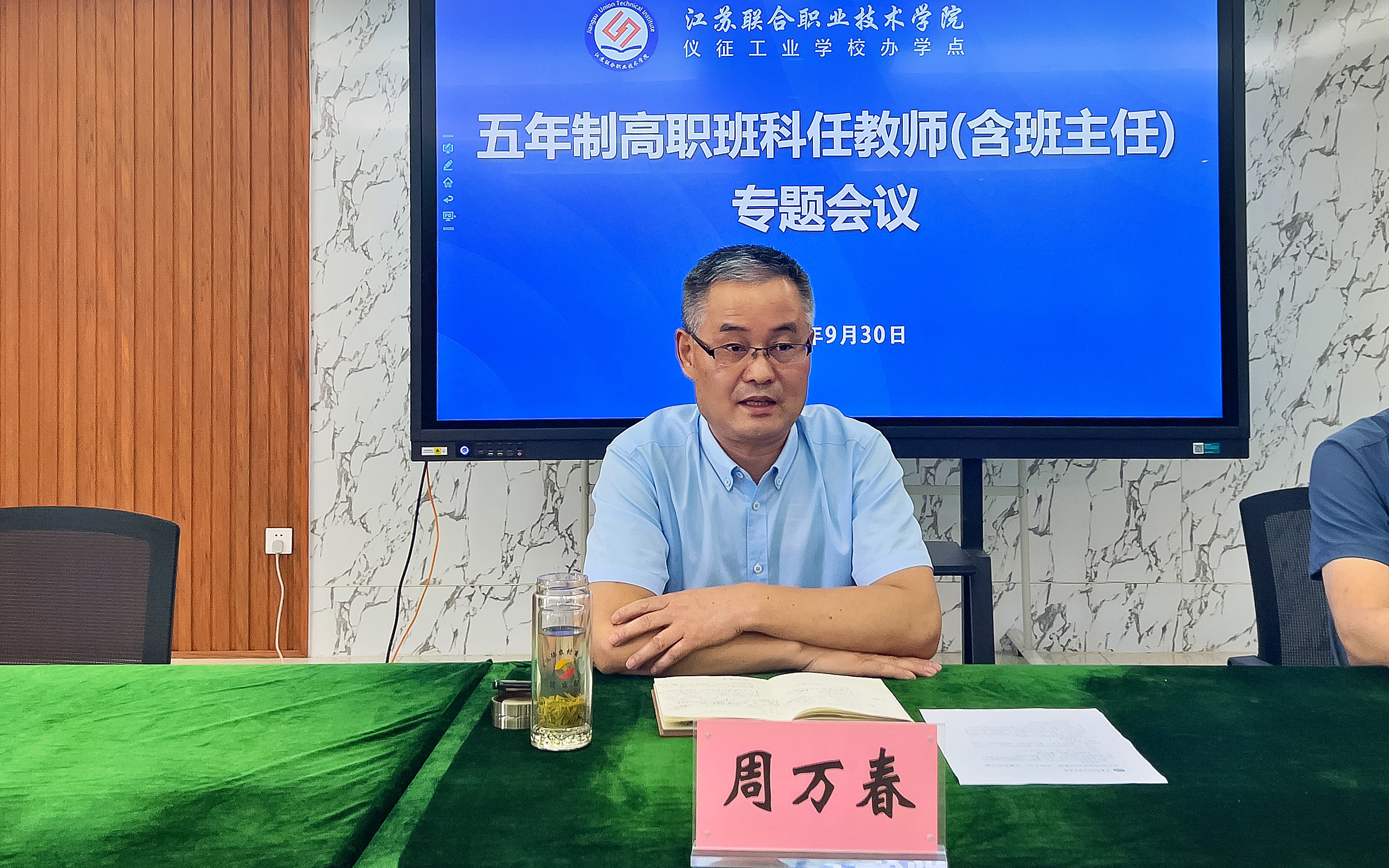 为聚焦五年制高职人才培养核心目标,明确科任教师(含班主任)教育教学职责,推动教学质量标准量化考核与教学行为规范化、成果化、特色化发展,9月30日下午2点30分,江苏联合职业技术学院仪征工业学校办学点在T903会议室召开五年制高职班任课教师(含班主任)专题会议。会议由张瑞祥副院长主持,周万春院长出席本次会议,五年制高职班科任教师、高职班班主任,5个专业系部负责人,以及教务处、学工处、教研室、纪检(督导)室负责人共同参会。