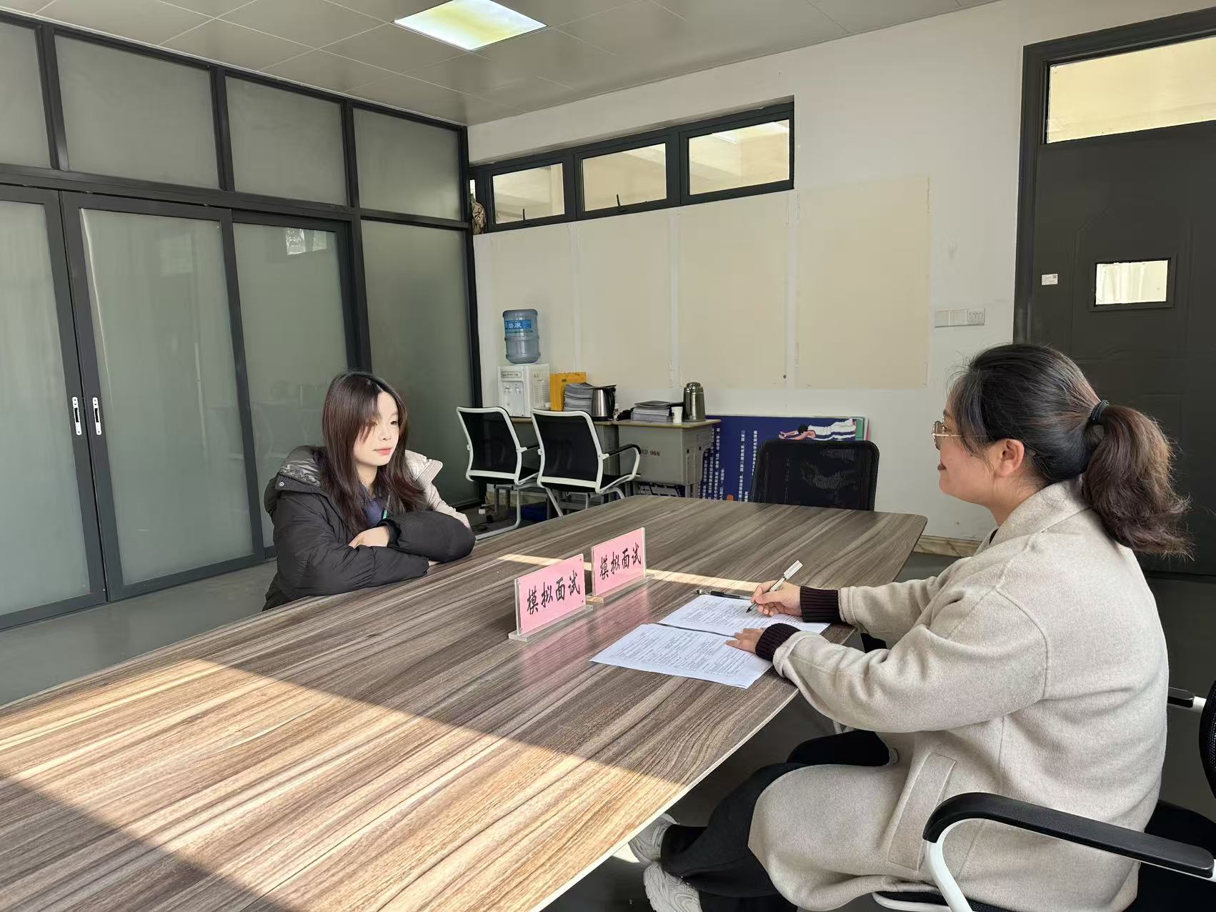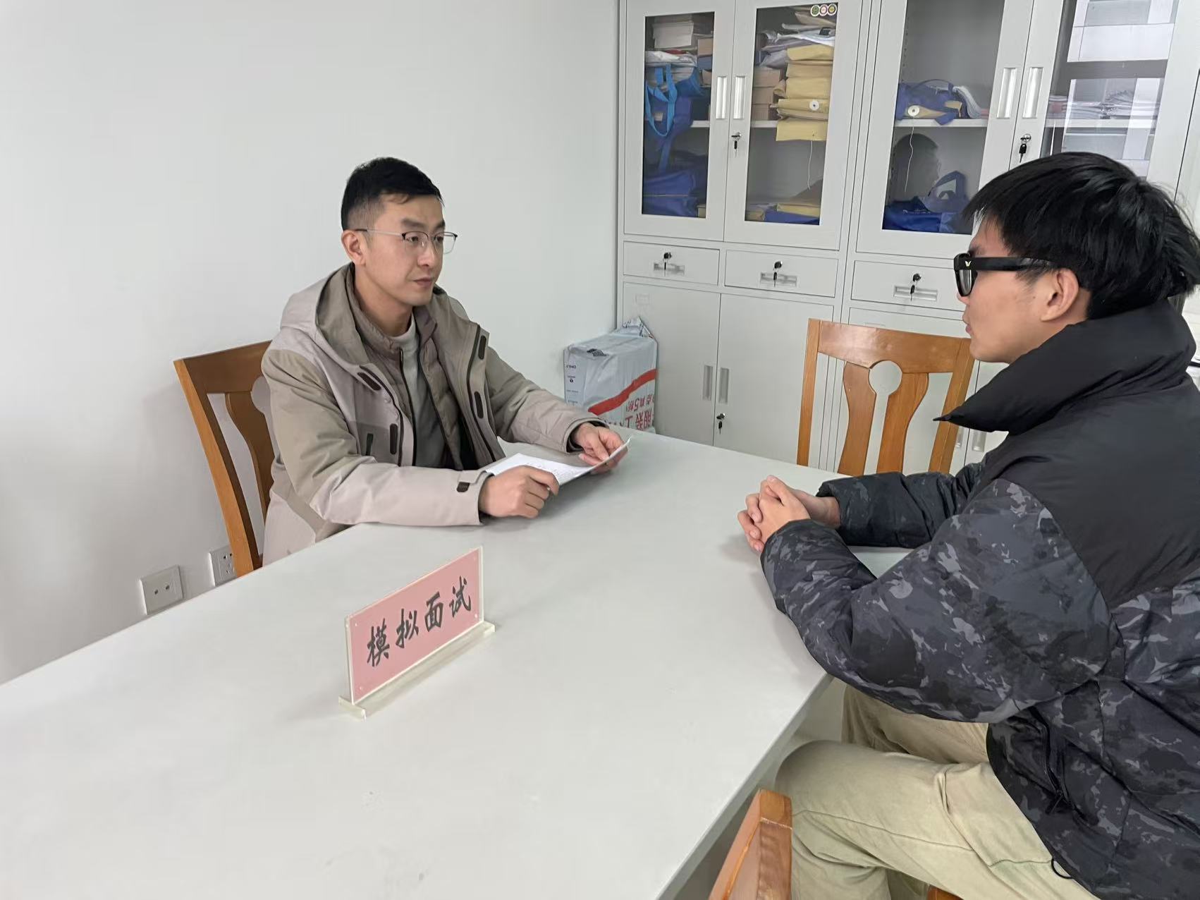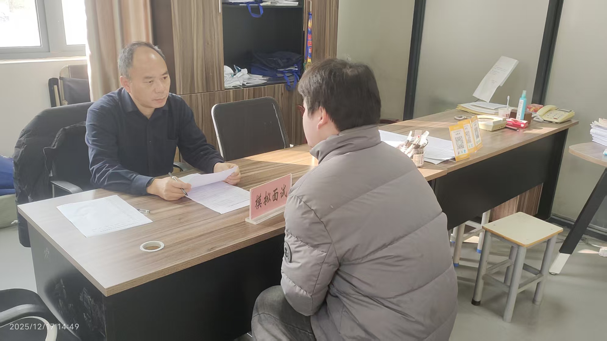 本次模拟面试紧密对接即将于12月26日举办的2025年校园招聘会,围绕企业真实招聘场景进行全流程演练,涵盖自我介绍、岗位认知、综合素质考察等环节。通过“以面代训、以评促改”的方式,引导学生查找自身在表达能力、职业认知和岗位匹配度等方面存在的不足,帮助其明确改进方向。