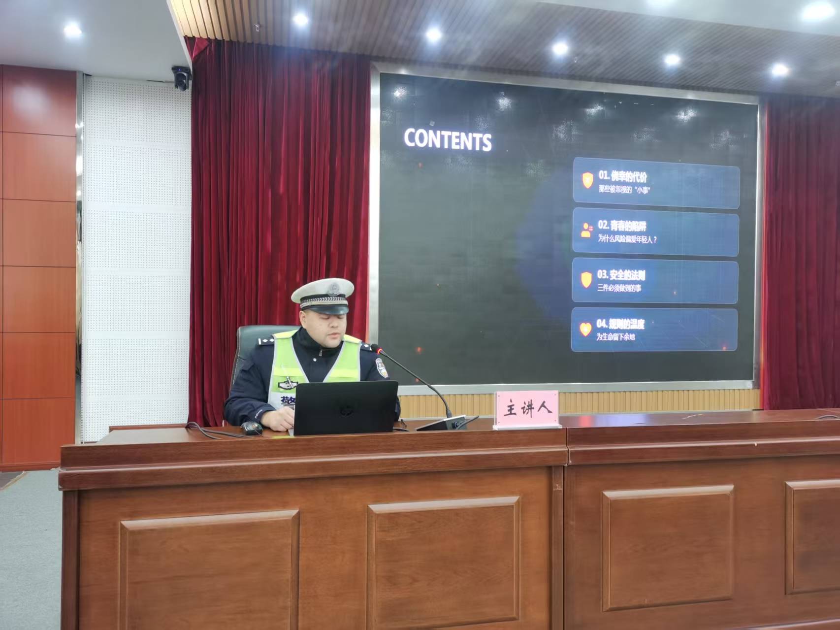 讲座分两个阶段进行。第一阶段,由冯铮警官主讲交通安全。冯铮警官以“侥幸的代价”为切入点,通过真实案例剖析了闯红灯、低头玩手机、不戴头盔、疲劳驾驶等“危险习惯”的严重后果。交通事故发生的瞬间,没有预告片,没有彩排。每一次侥幸,都不是“没事”,而是在赌一辈子的安全。