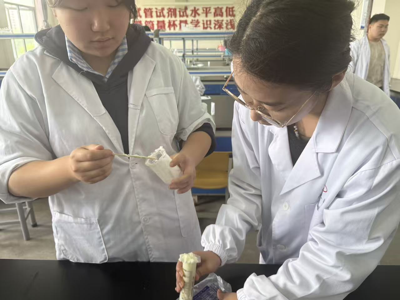 4月15日下午,仪征技师学院化妆品制作社团人气高涨,课堂氛围热烈。本次社团活动以DIY护手霜为主题,由现代服务管理系化工专业周莹老师授课,带领同学们在动手实践中感受化学之美。